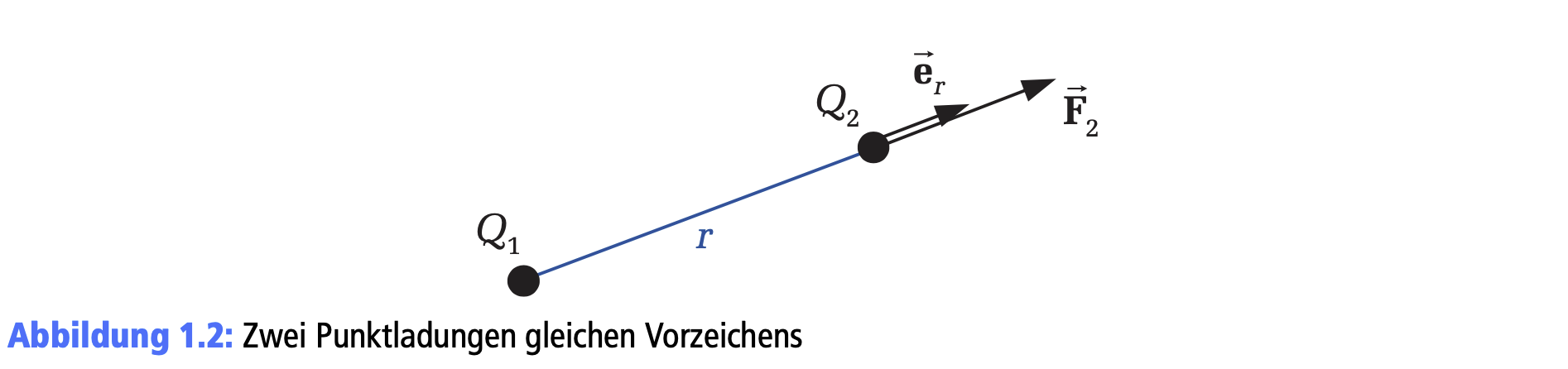 - Mit der Festlegung eines Einheitsvektors , der gemäß Abb. 1.2 in Richtung der Verbindungslinie von der Punktladung zur Punktladung zeigt
