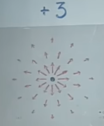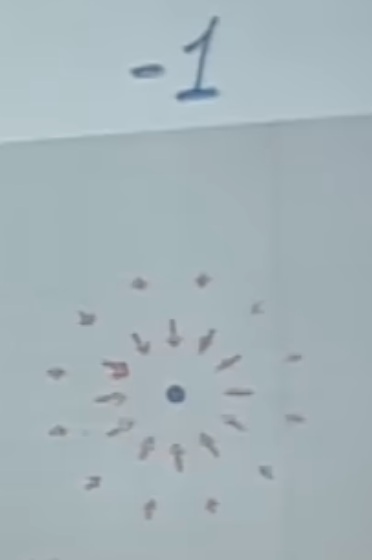 Man sieht das Elektrische Feld ist am stärksten in der nähe der Ladung deshalb sind die Pfeile dort am grössten jedoch werden sie immer kleiner weil das Feld im abnimmt.